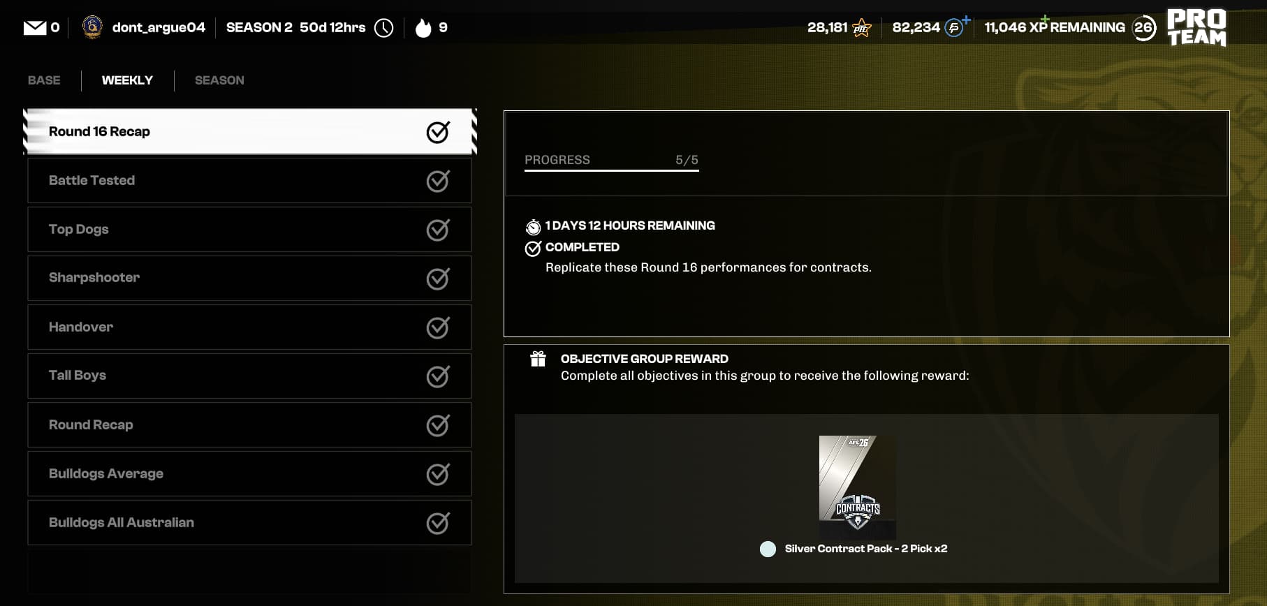 I can see what they are trying to do in dragging out the stages of the cards as it’s a new title and they don’t want it to be flooded with the best cards early on, but there needs to be some attention given to to how you have a balance of the early stages of a new PT game for AFL 26 but also you do want teams to look different based up rare pack luck or to the grinders who manage to get a really hard objective done to claim a card not many people will be able to get.