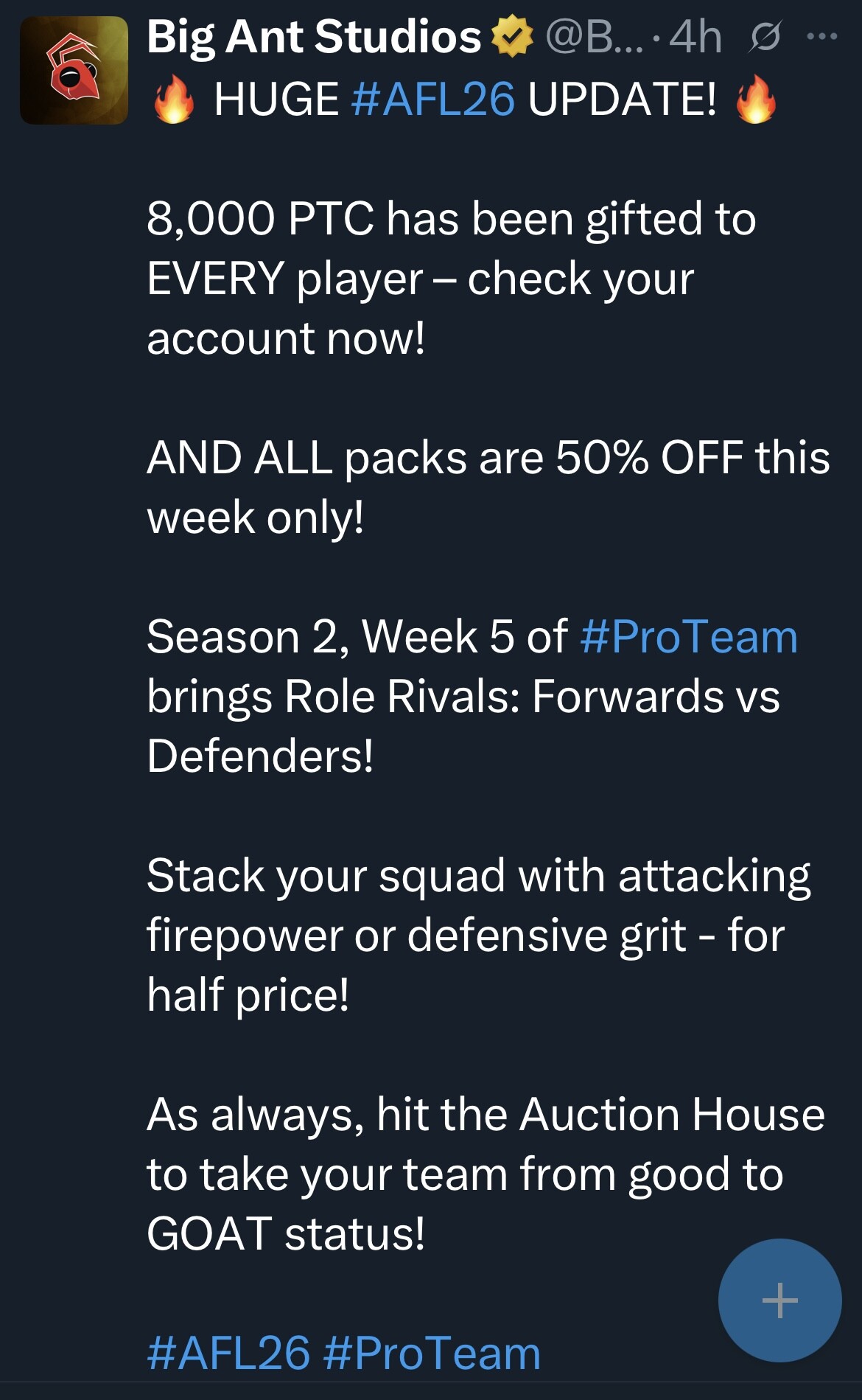 It seems that everything is focused on the Pro team. It would be nice if the developers could inform the player base about whether any significant gameplay updates will now be saved for the next version of the game (Afl28 if it happens) and if any future updates will only apply to the Pro team - to keep the cash flow healthy.