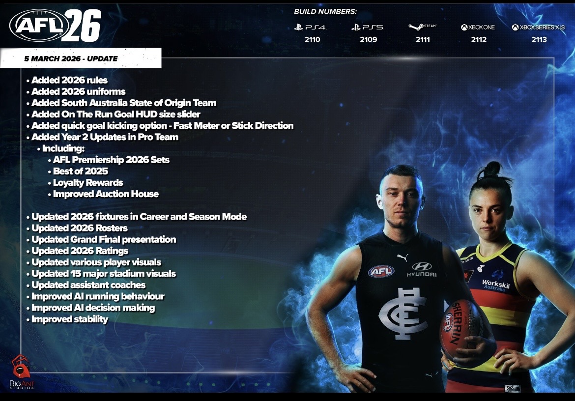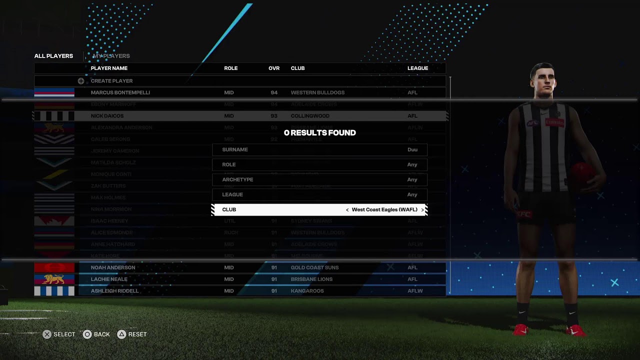 Also Iāve noticed when you go too player manager and search for players in the AFL 26 list it only says 66 results found but when you select AFL 25 it says 808 results found