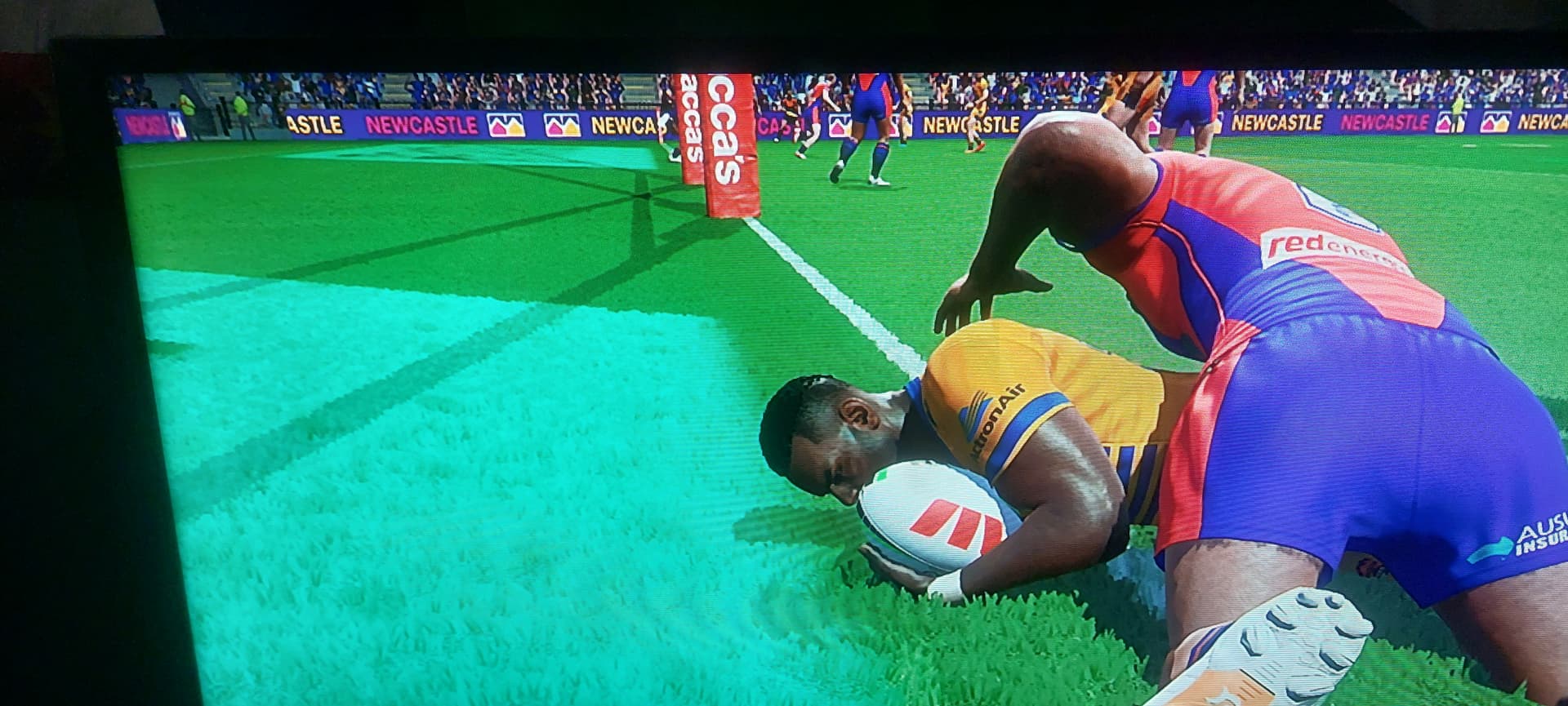 Nacon you guys really need to fix the defenders retreating behind the dead ball line whilst a tackle is being made close to the try line or over it. Playing a womens game this morning 1 of my girls was getting pushed back over the try line whilst the majority of the other defenders were not only behind the dead ball but over the fence. A try was scored because there were no other defenders close enough to help.