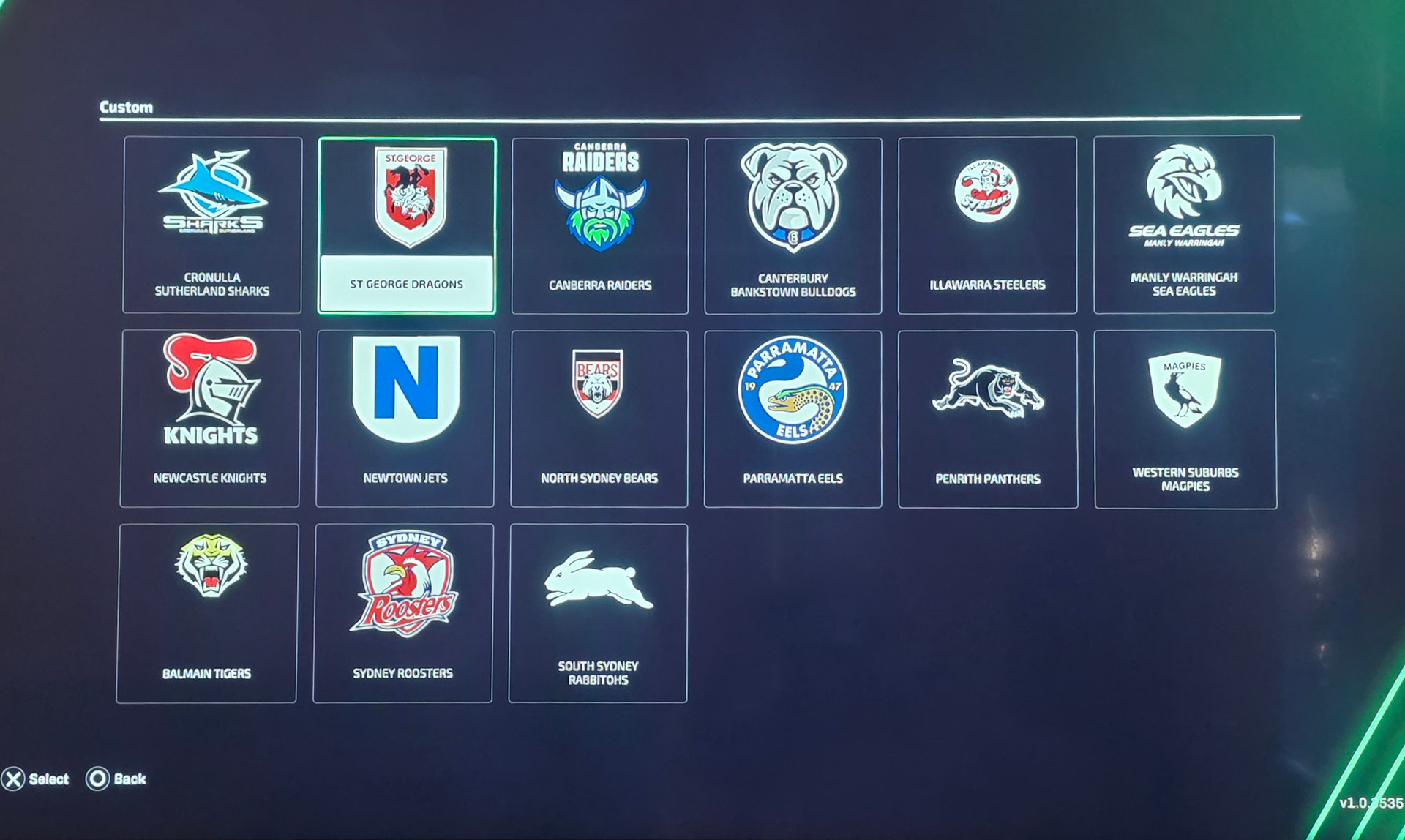 It would also be nice if we could play a custom comp with a minimum of 17 teams or be able to select our custom leagues when trying to play a preset NRL comp like we could in both live 4 and 3.