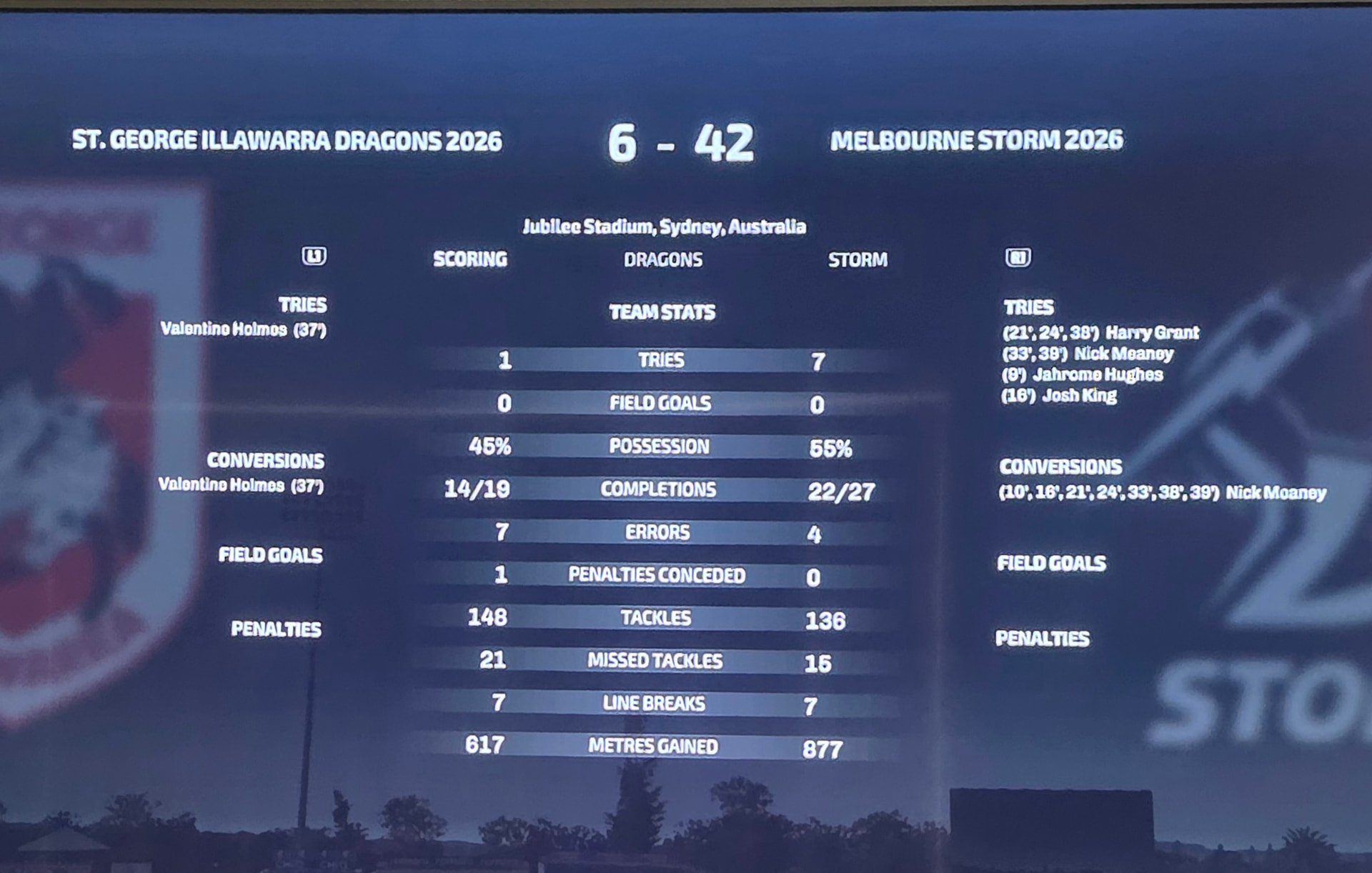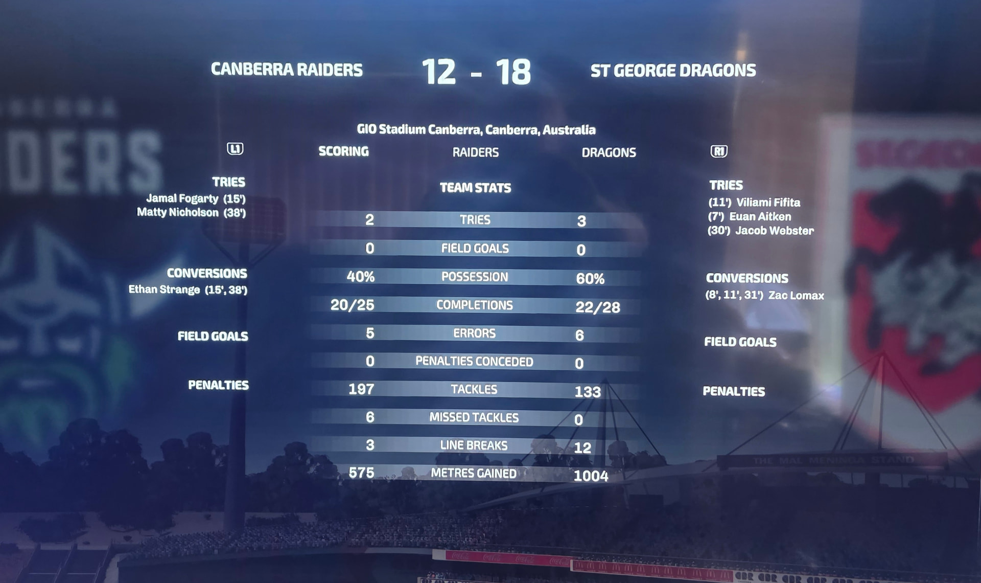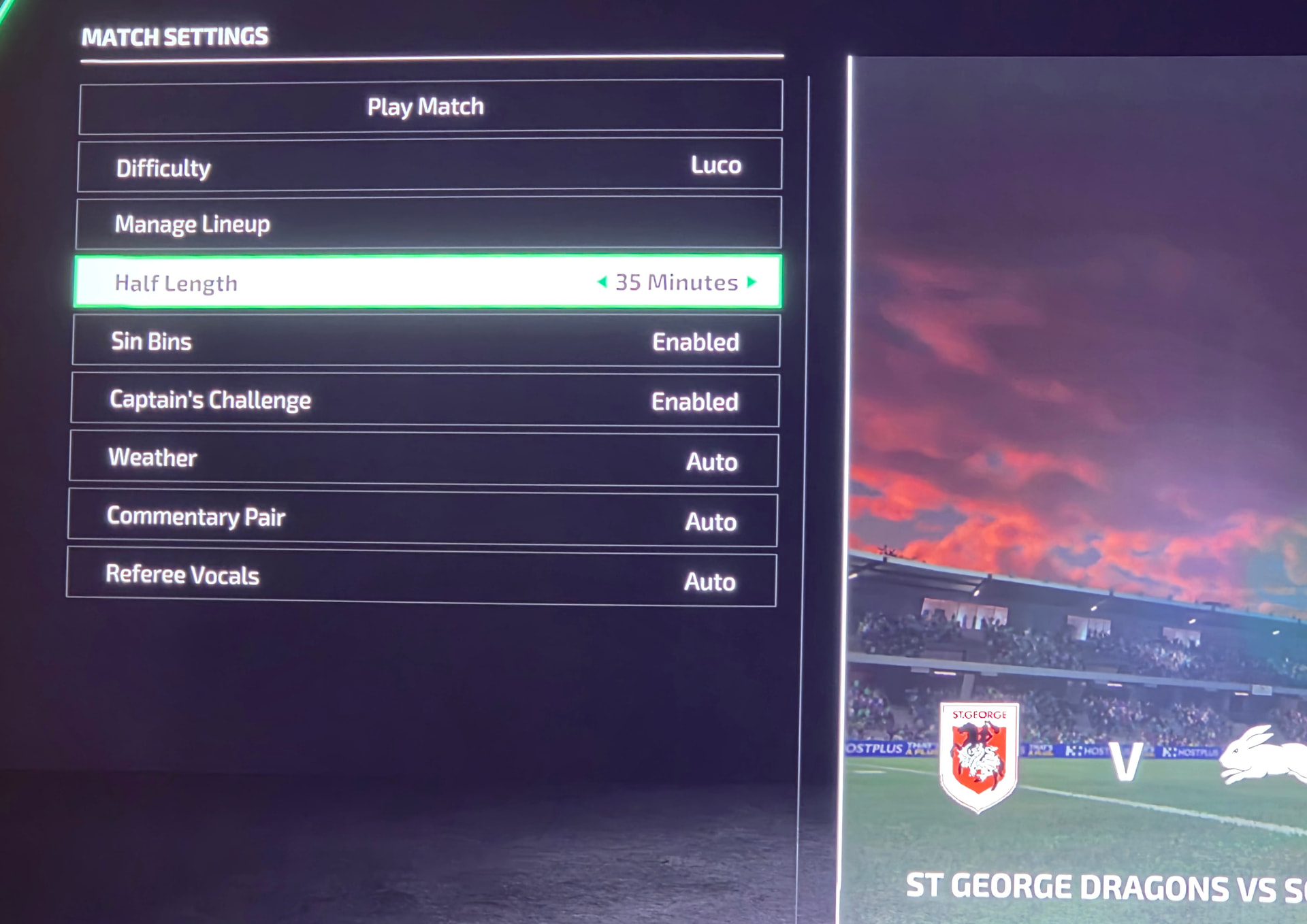 Just finished half a game (35 minutes) on pro mode using 2026 teams i downloaded before playing. This is the result i got. Melbournes rating 84 the Dragons rating 80.