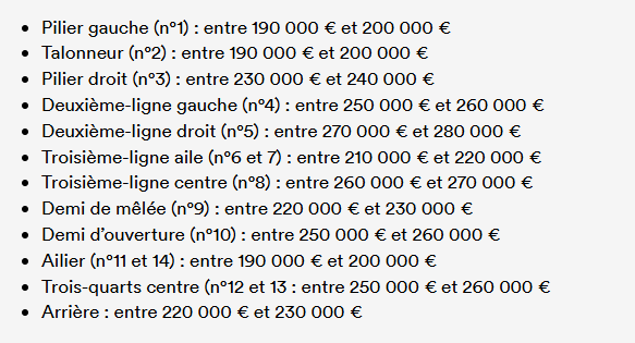 If it can helps, RugbyPass shared an average salary range for Top 14 Players. Star Players to be paid more