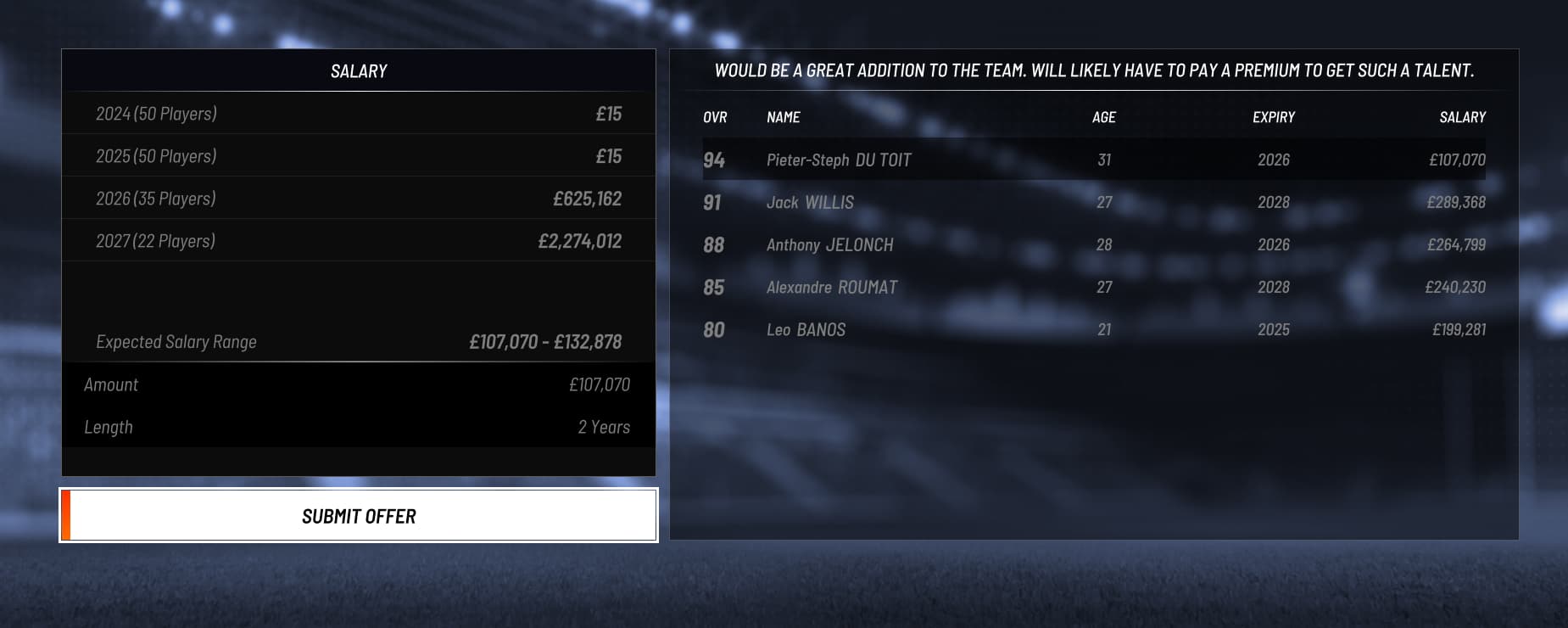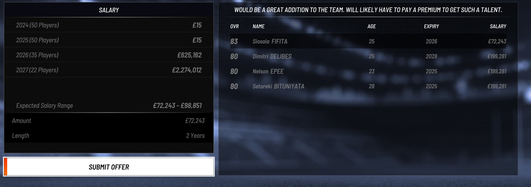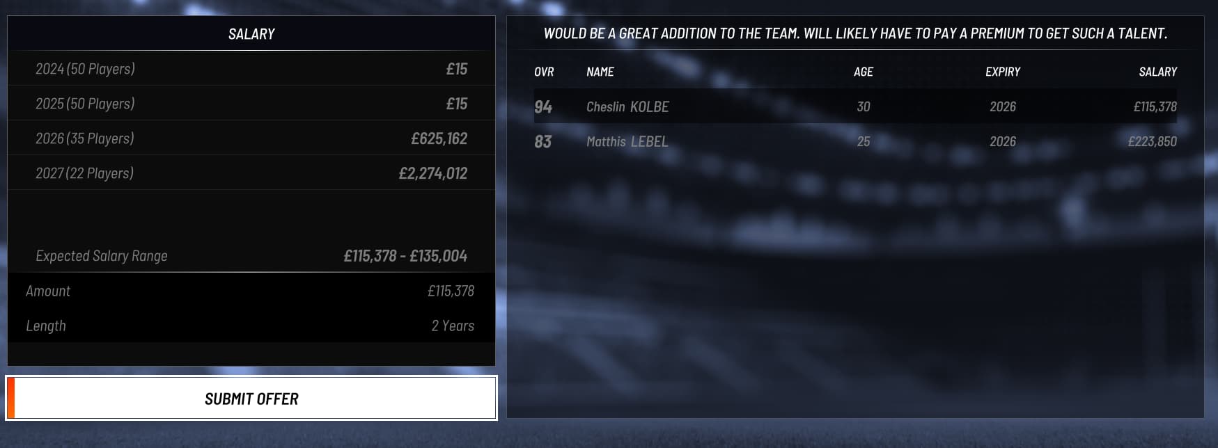PSDT, Kolbe are Free Agents, only requesting 130k max which is a low salary compared to the other players in the team. The salary requested is way too low for such players, to be balanced.