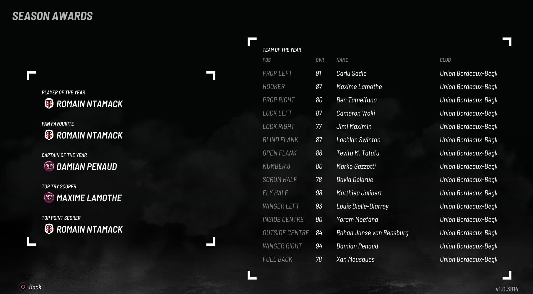 Inconsistency in Top 14 Season award: Ntamack is the āPlayer of the Yearā. So it would be normal that he appears in the āTeam of the Yearā