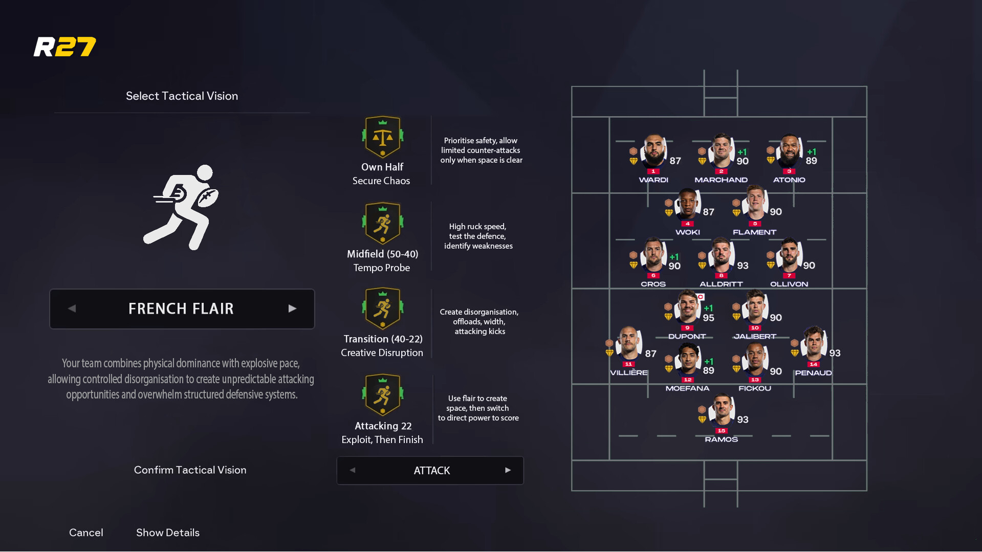 Rugby 25 lacks real tactical depth in gameplay. If gameplay becomes solid, the Career Mode needs to offer many more tactical possibilities to the coach.