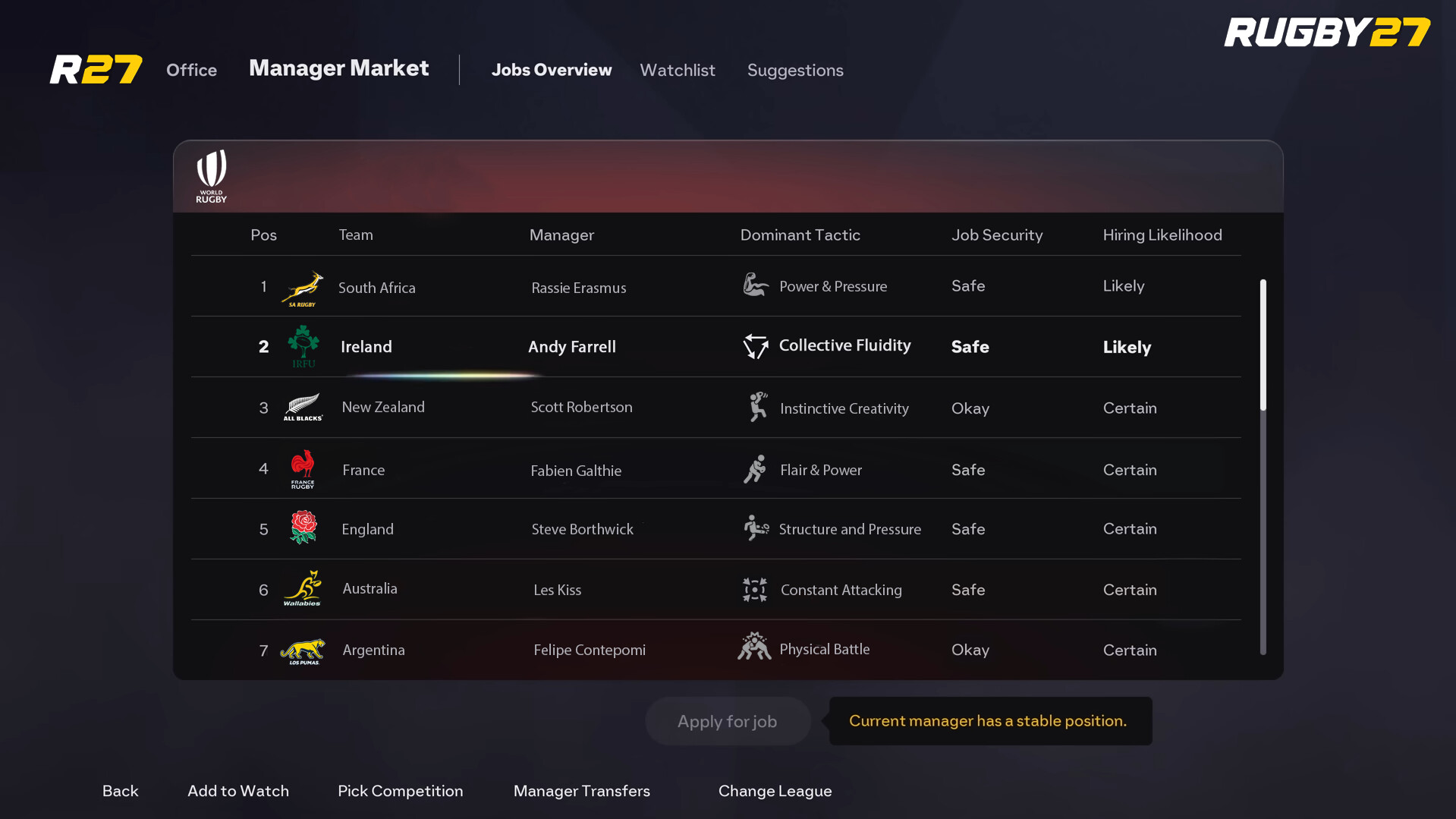 The ability to coach all nations in Rugby 25 is an excellent feature â itâs one of the coolest aspects of Career Mode. However, the current system for becoming a national head coach feels unrealistic and poorly presented.