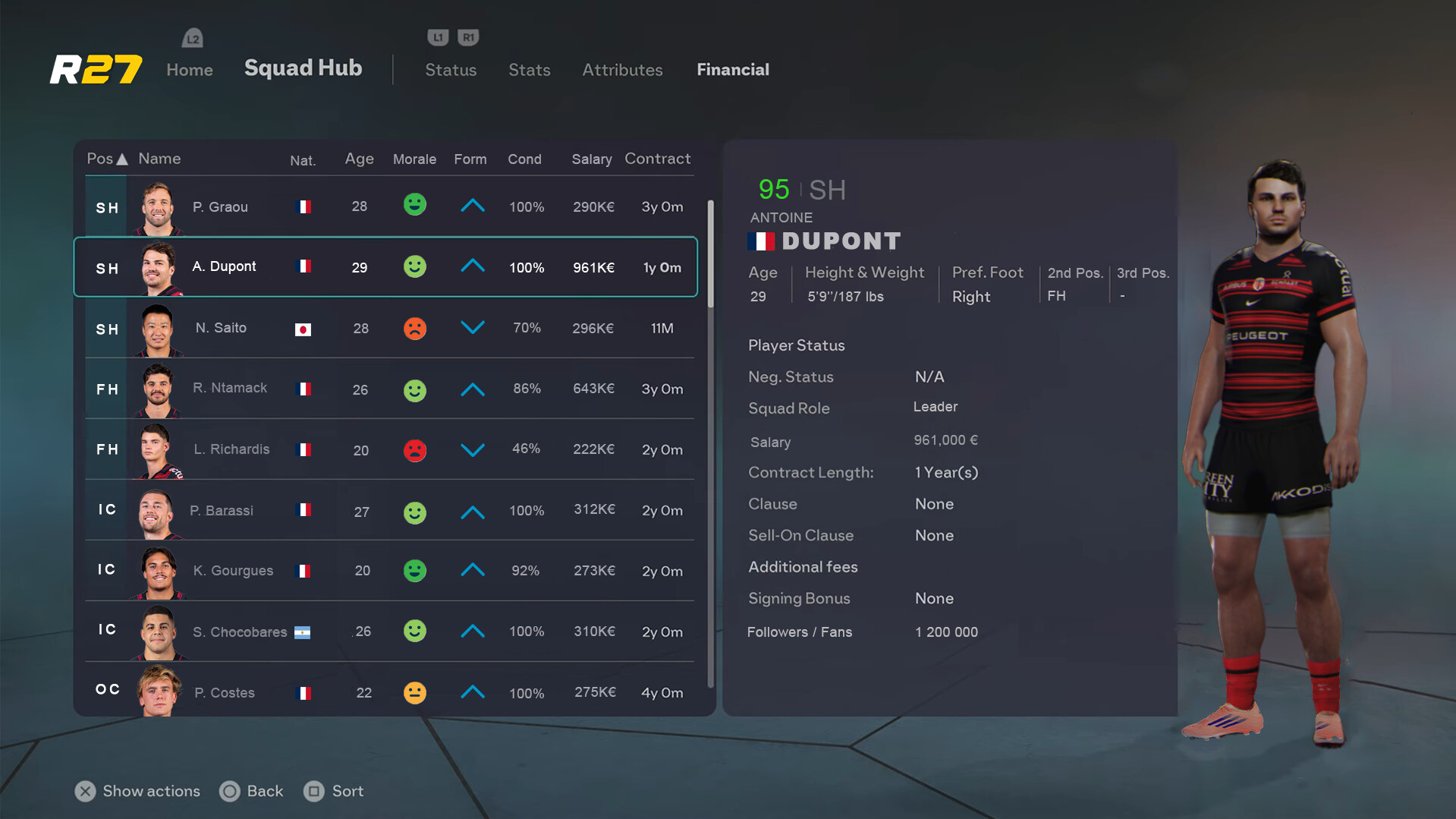 In my opinion, the Squad Hub can be significantly improved compared to Rugby 25. R25 already includes some of these elements, but this screen shows how it could be taken further by adding more depth, visibility, and interconnected systems.