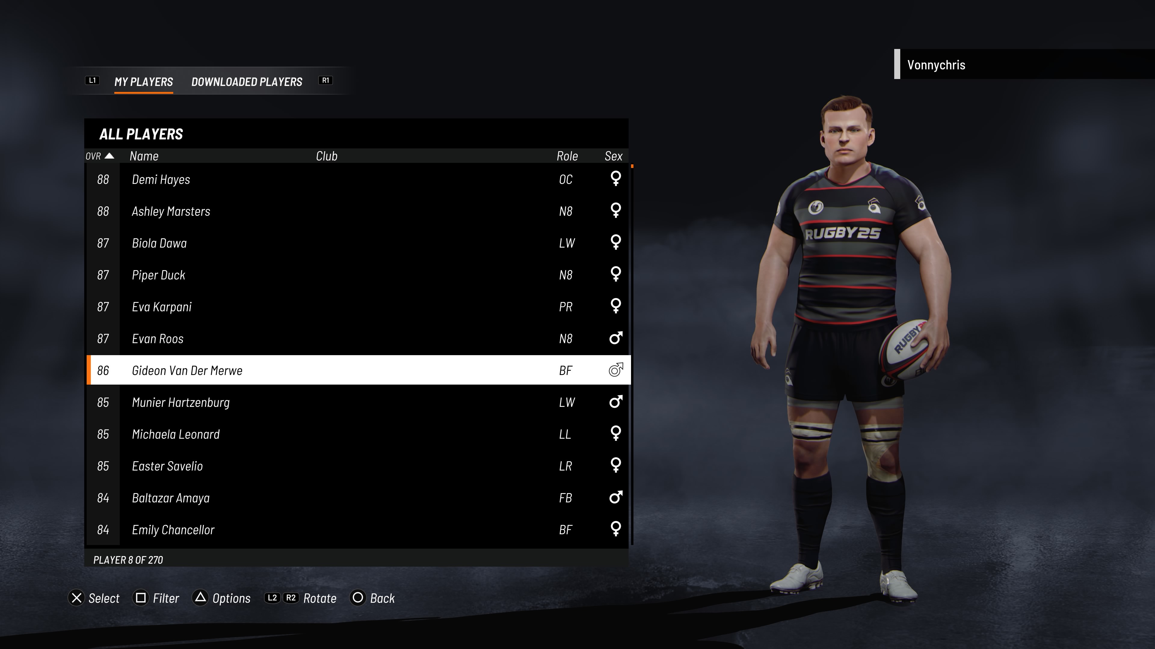 This player below Gideon Van Der Merwe was assigned to a Custom Toyota Cheetahs Team.