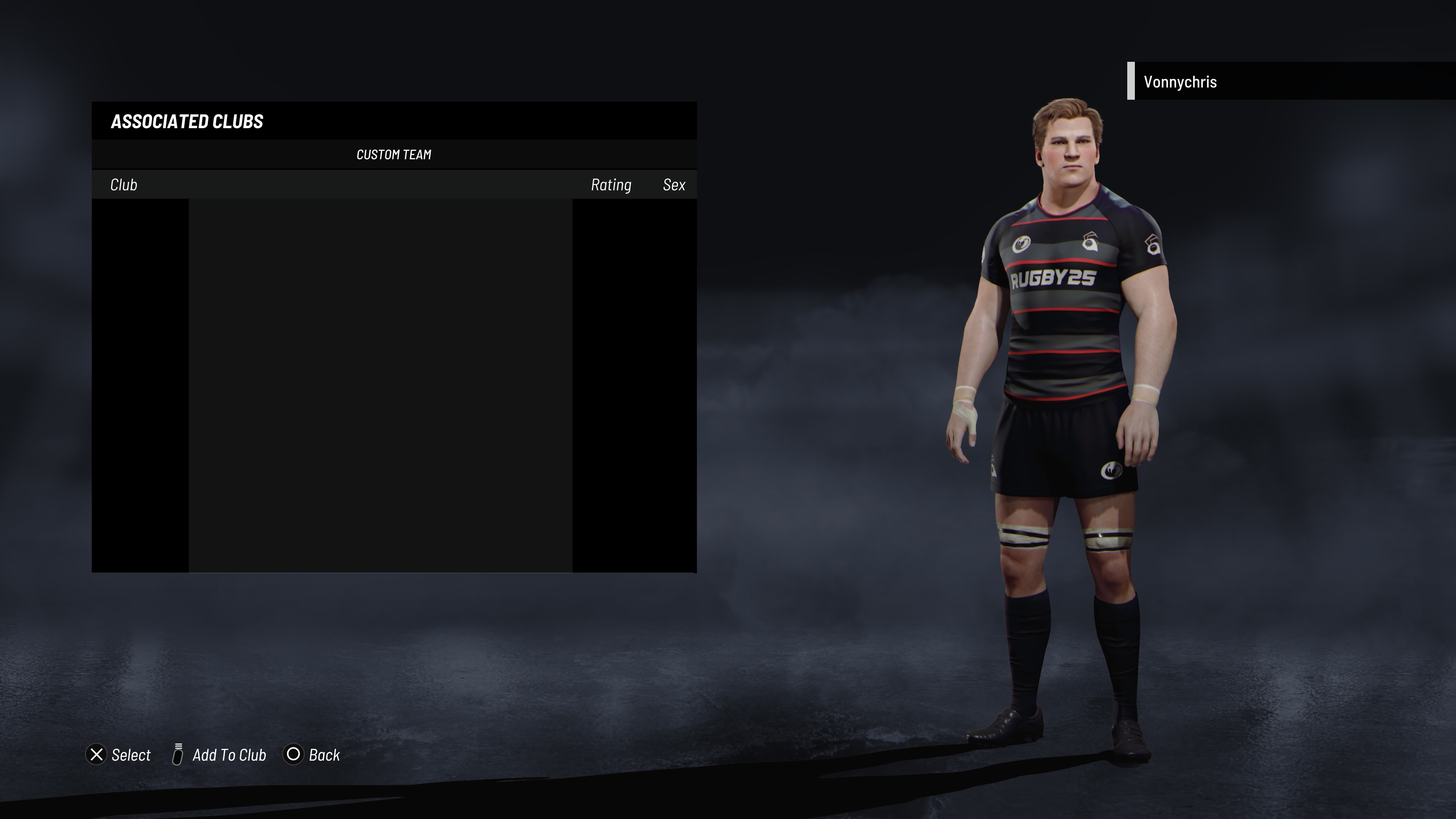 Further screen shot - Clicked on club to allocate a player to a custom club. None on list