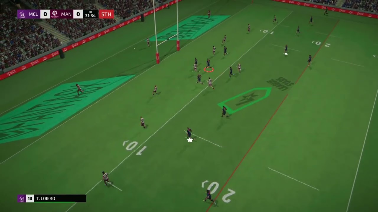 This can still be improved upon further with animation glitching/close to the tryline kicking but such a better game for it. Have had the AI kick half a dozen 40/20s on 4th tackle and also a 20/40, having to think about dropping my wingers back now. I would love to see the AI kick chase tightened up a bit now between the Centre and 2nd Rower and the drop goal ball physics improved.