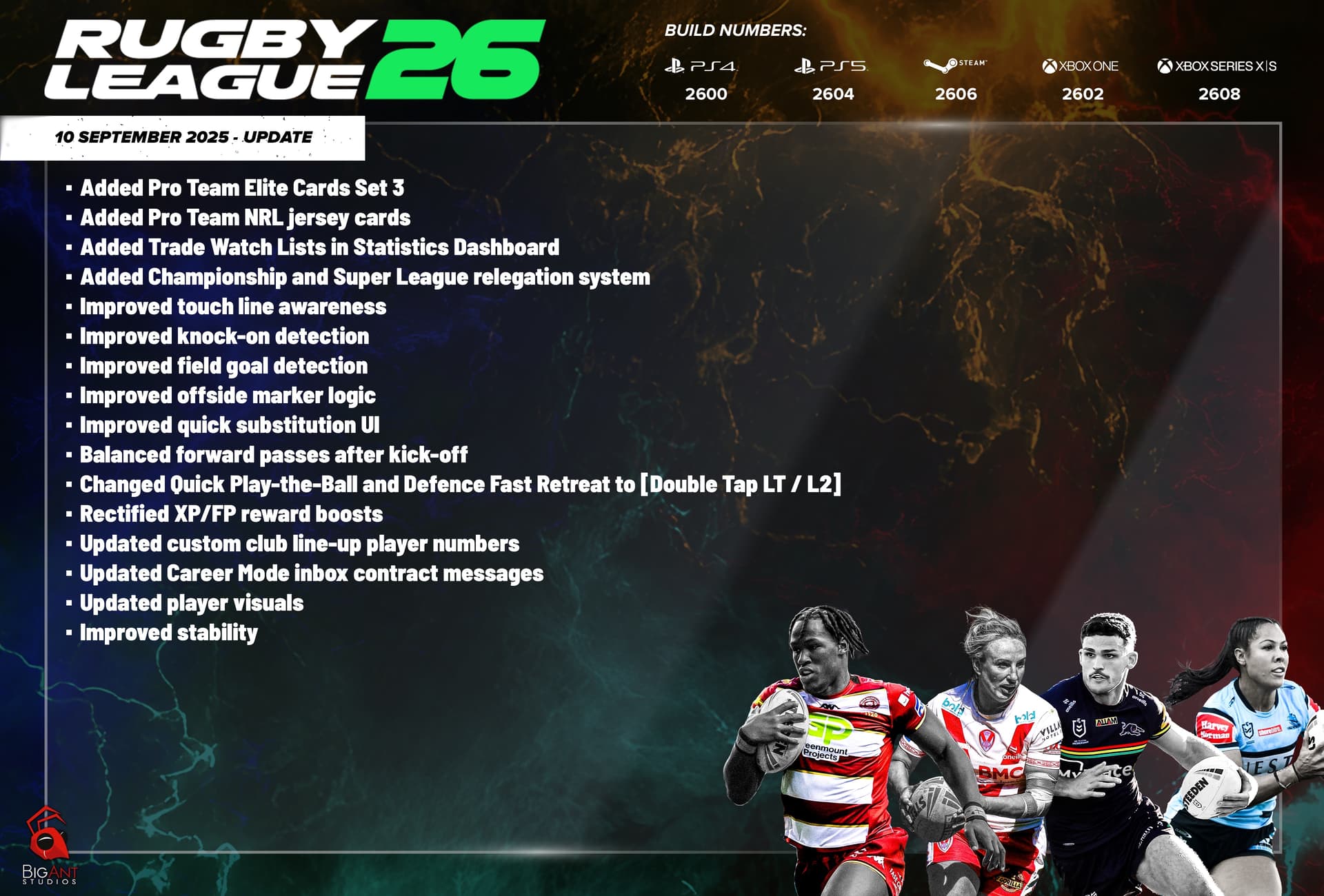 Donât get your hopes up @Radman. Dummy half logic isnât improved, I still see the AI carry the ball out when catching close to the sideline and the double tap thing on both sides of the ball donât seem to work.