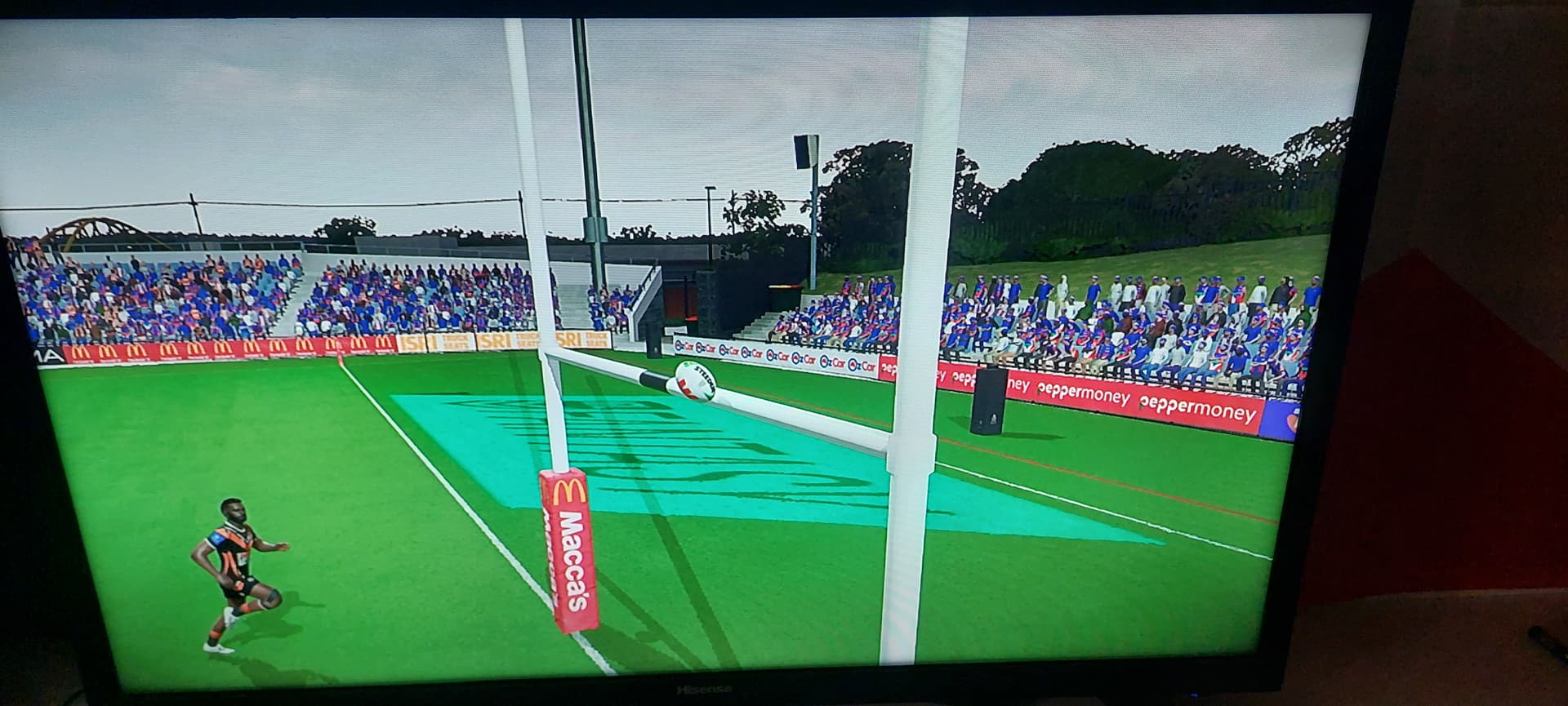 Last play of the game, I was up by more than a converted try, siren went, so I just thought I’d have a crack. Hit it sweet from the 50m line, sailed straight and true … but hit the crossbar!